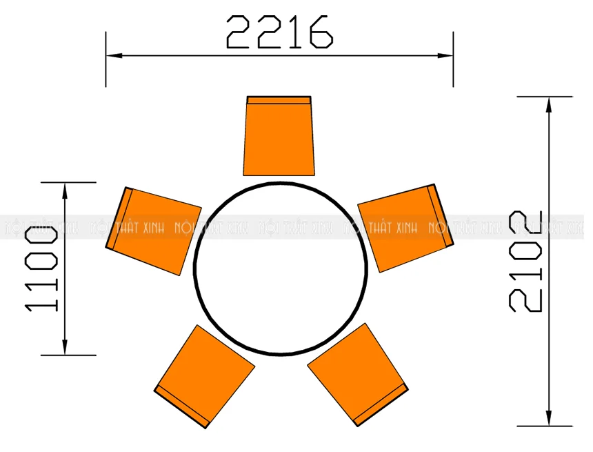 - Đối với dạng bàn ăn tròn thì kích thước đường kính khoảng 1200mm.